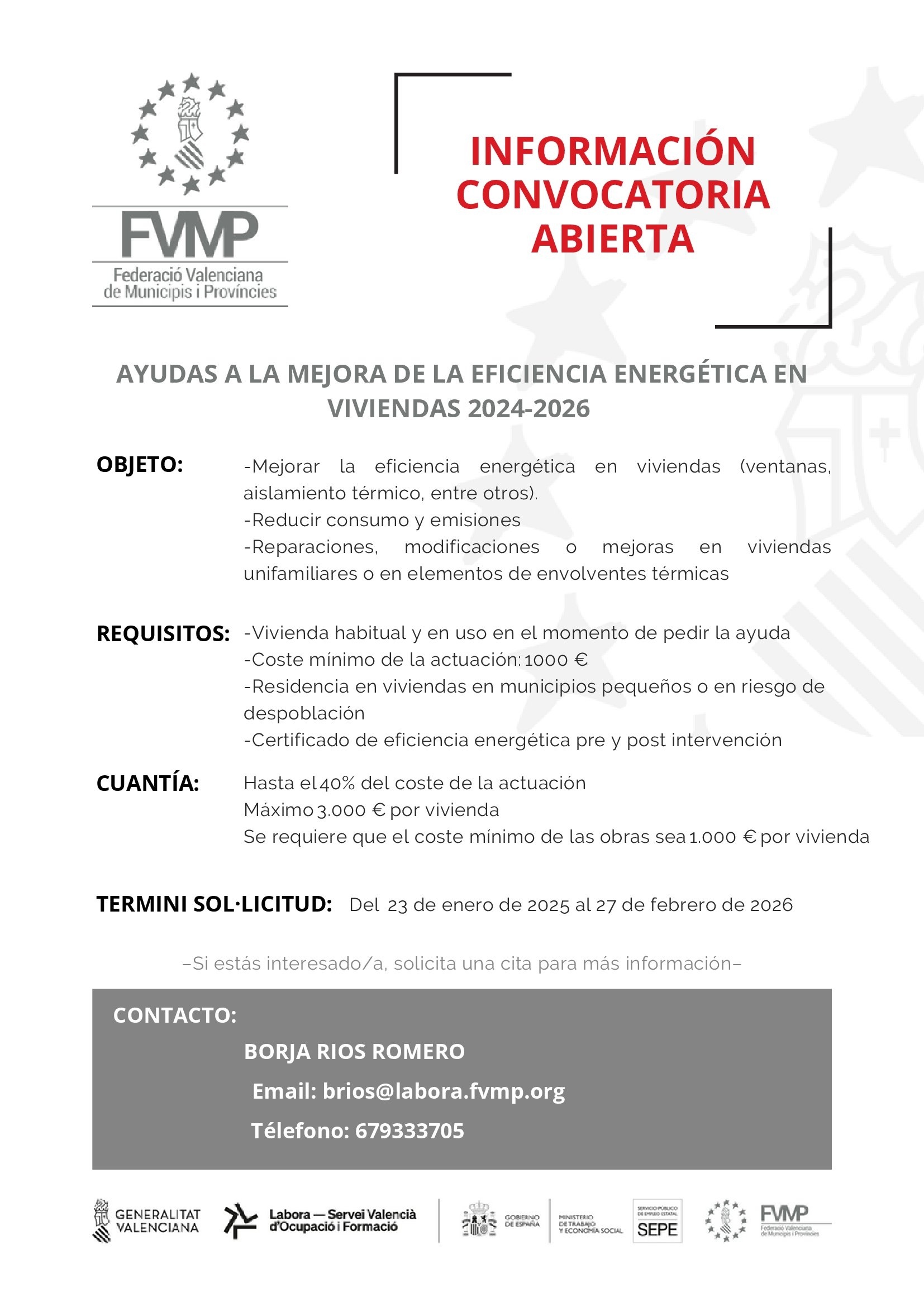 Ja està oberta la convocatòria d’ajudes per a la millora de l’eficiència energètica en vivendes 2024-2026.