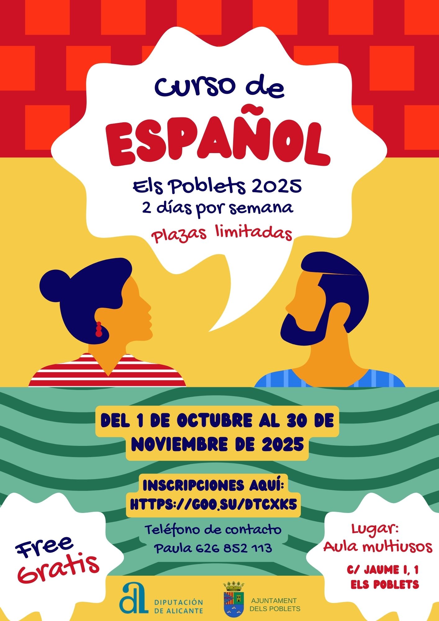 ¡Apúntate al curso de español en Els Poblets 2025! Dos días por semana, del 1 de octubre al 30 de noviembre. Inscripción gratuita y plazas limitadas. ¡No te lo pierdas!