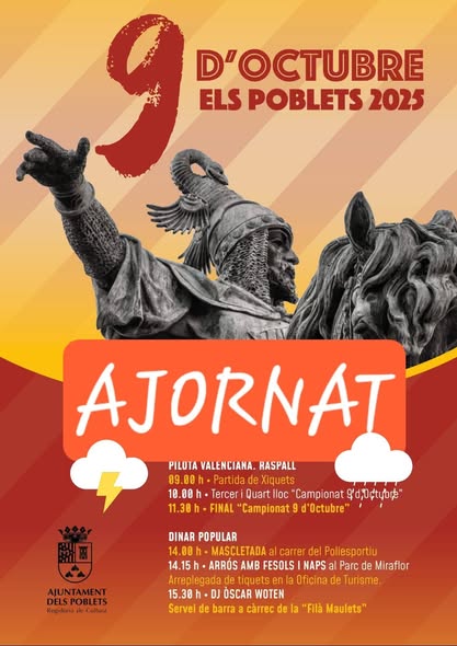 Els actes del 9 d’octubre es celebraran finalment el pròxim 19 d’octubre, mantenint la mateixa programació prevista.